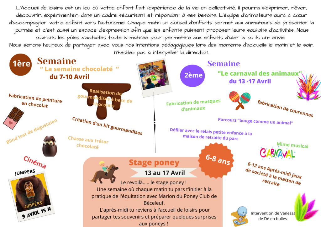 Le Centre Socio-Culturel propose un accueil de loisirs durant les vacances, du 7 au 17 avril, dans les locaux de l'école de Champdeniers.